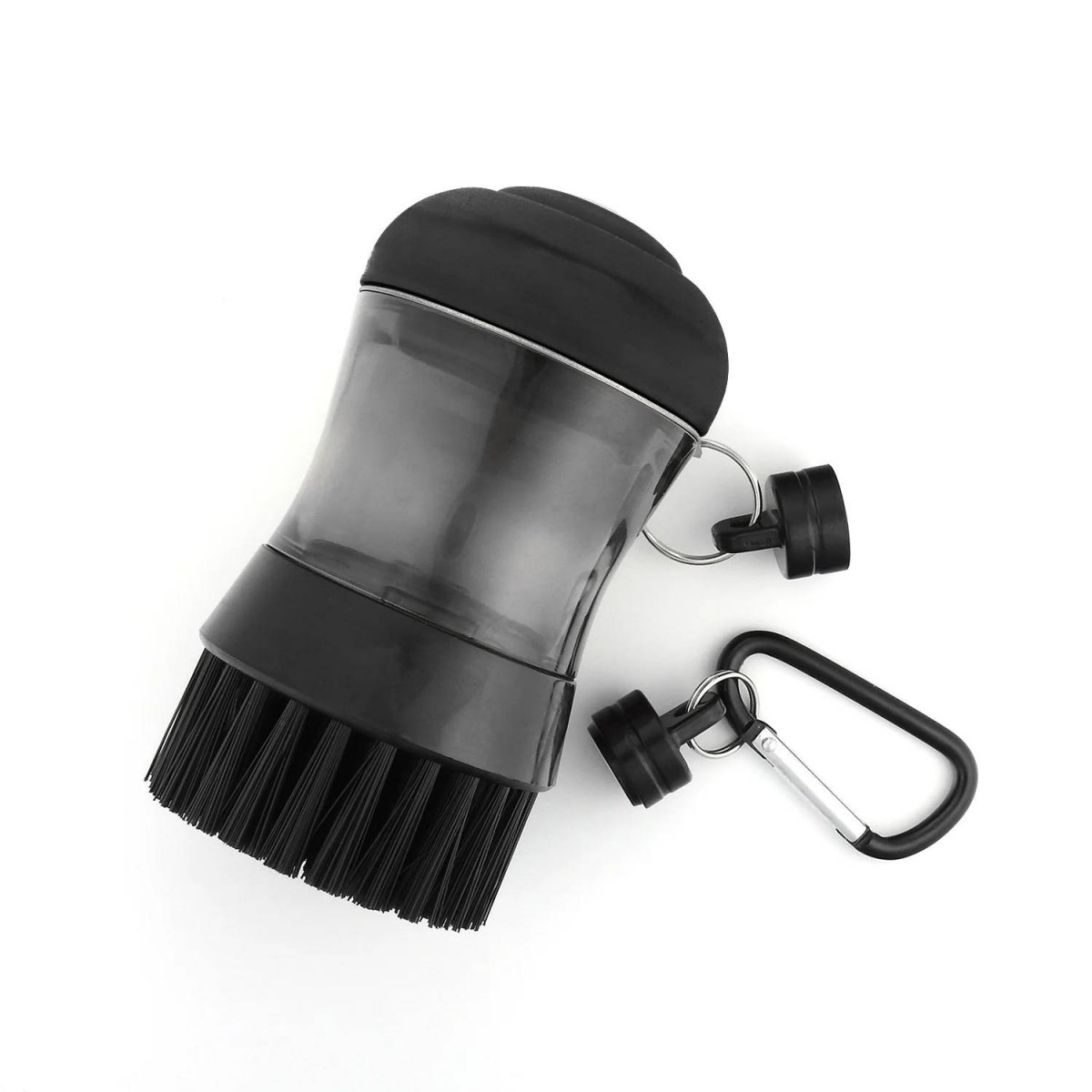 Club Cleaner Pro is the perfect tool for quickly and easily cleaning your golf clubs before every shot. By keeping the clubhead clean, you maximize ball speed, accuracy, and backspin—giving you better control over your shots. The smart, detachable magnet makes it easy to attach the brush to your golf bag, keeping it within reach whenever you need it. Using it is simple: unscrew the lid, fill it with water, and spray with the convenient spray button for efficient cleaning. Thanks to the powerful magnet, the brush stays securely in place without the risk of getting lost.With high-quality materials and an ergonomic design, Club Cleaner Pro is both practical and durable—an essential accessory for any golfer who wants cleaner clubs and improved performance.