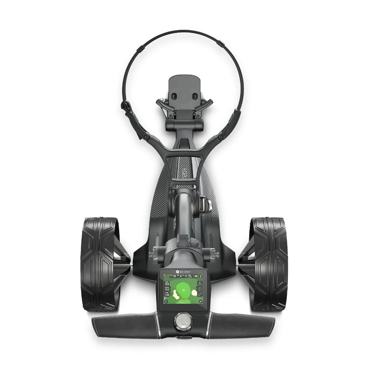 Packed with technology that enhances your game, it delivers high-performance GPS through a responsive and crystal-clear 3.5" touchscreen. The distinctive design is inspired by the automotive industry and features new 10-spoke tyres, complemented by hand-stitched premium leather handle grips, polished chrome detailing, and carbon fibre-inspired styling for a truly premium look and feel.