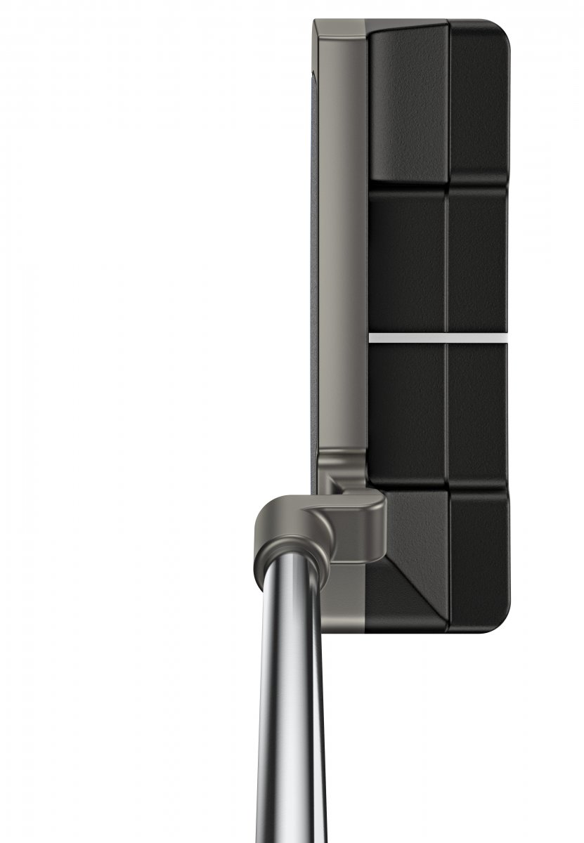 This slightly deeper, perimeter-weighted blade design has similar weight, size and forgiveness of a mid-mallet putter. A single contrasting alignment line and clean heel-toe ballasts make aiming easier to inspire a confident stroke in this slight-arc model.