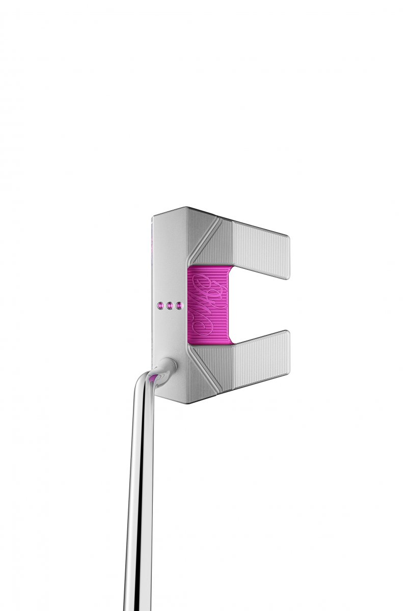 Like a Hollywood star premiering on the red carpet, this year’s limited release Scotty Cameron My Girl “Pink & Pearls” putter ushers in a prototype 34-inch Phantom 5 design that demonstrates how a drop-dead gorgeous putter can also be a precision-milled masterpiece. The Pink & Pearls theme carries through every aspect of Scotty’s 24th unveiling of this very special model, a compact mallet crafted from solid 303 stainless steel and 6061 aircraft grade aluminum as a one-of-kind showstopper.