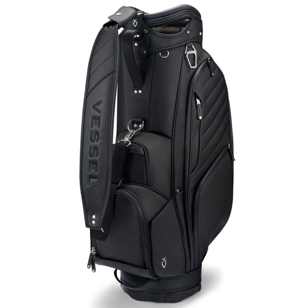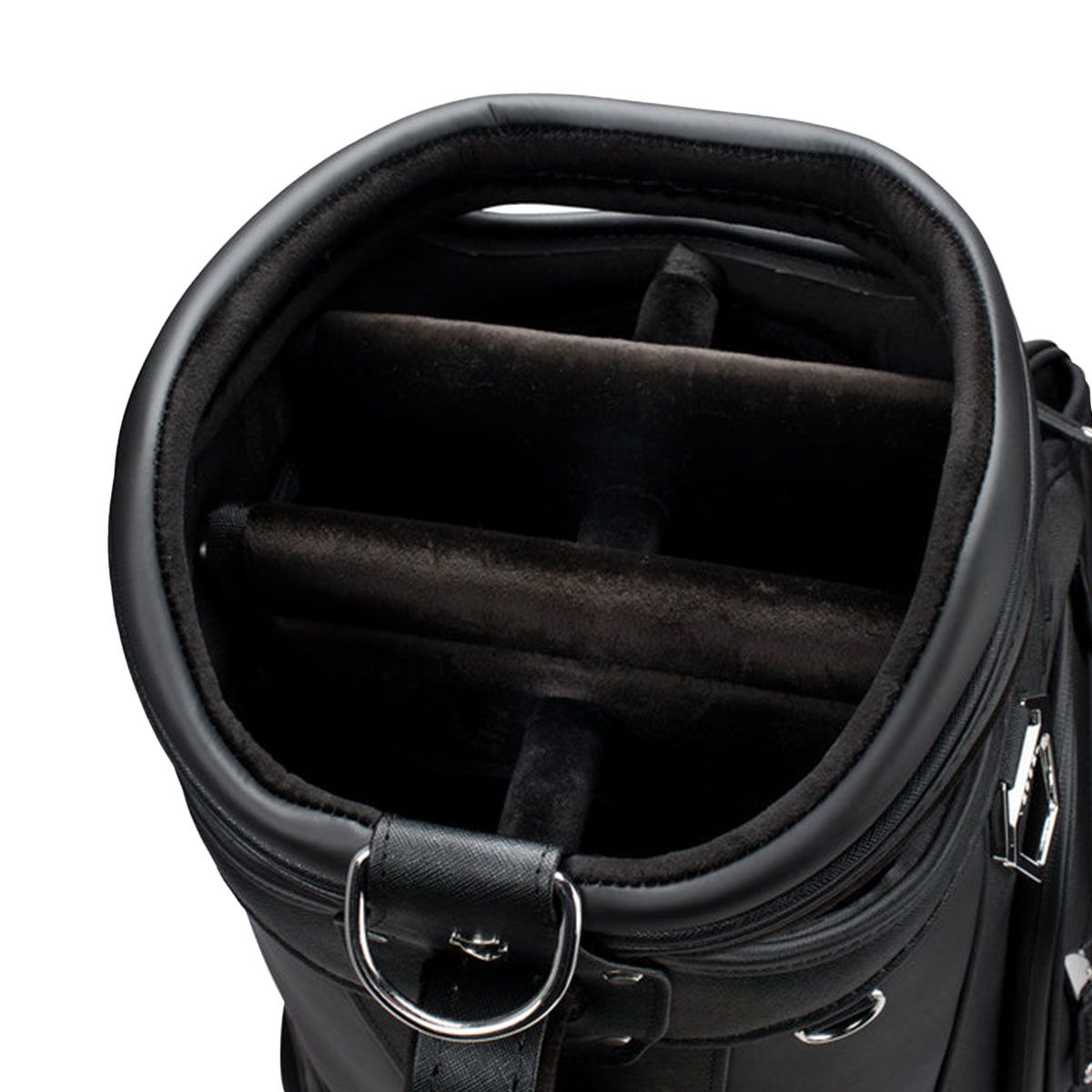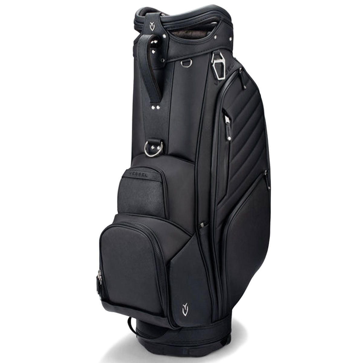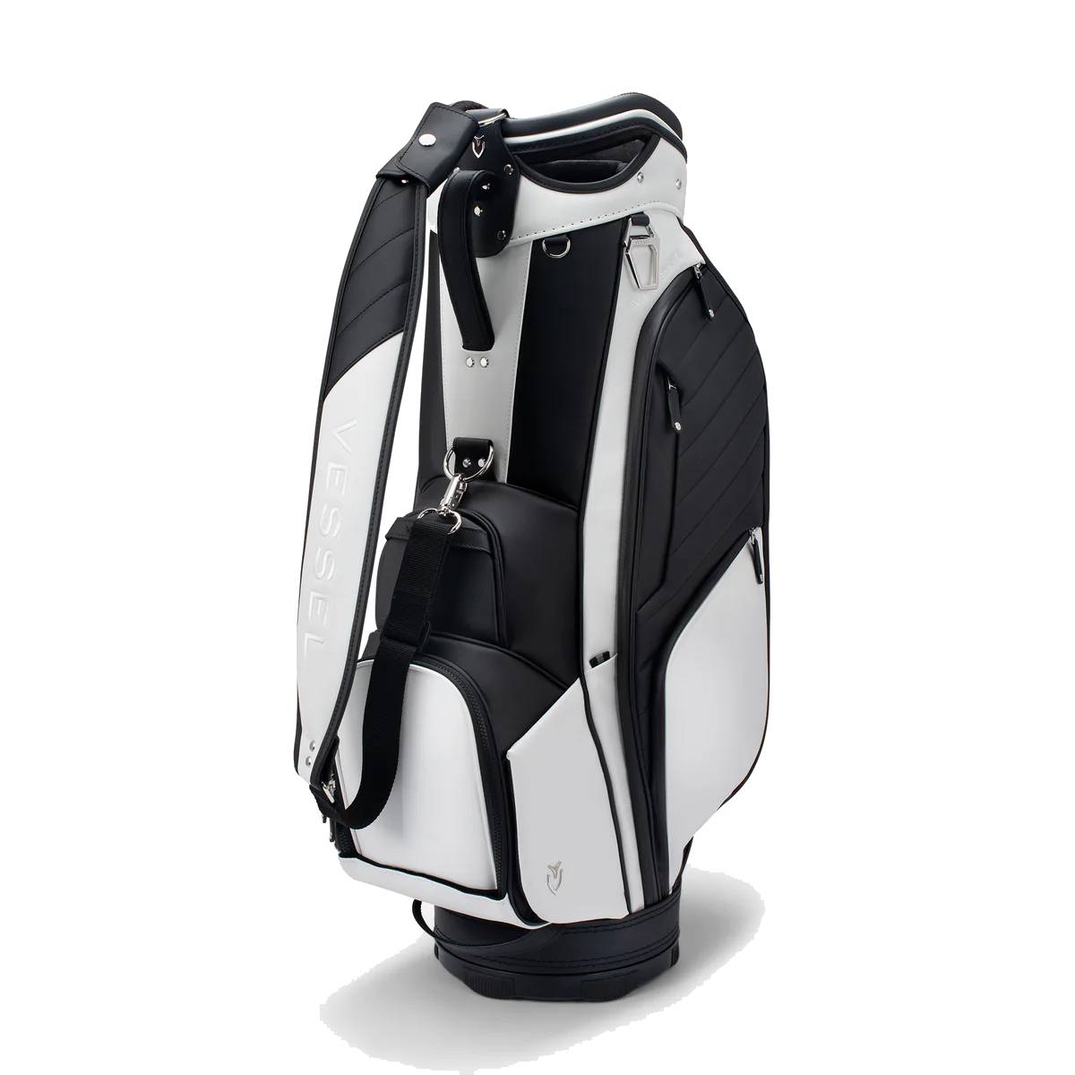 The Lux Prime has created a category all of its own in our collection as it boasts all the functionality of our top-level cart bags with the bold styling of our tour-proven staff bags. Intuitive organization, such as front facing pockets and dual personals pockets on either side of the bag allow for easy access while on a golf cart, push cart or trolley. With two dedicated water bottle sleeves and a thermal-lined cooler pocket, this cart bag has ample room for beverages. The Lux Prime is the culmination of our design team’s pursuit to bring together elegant styling with tour proven performance. Lux detailing includes premium leather touchpoints, quilted stitching and microfiber wrapped club dividers.